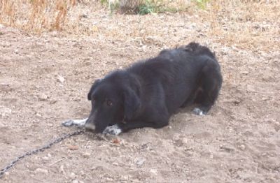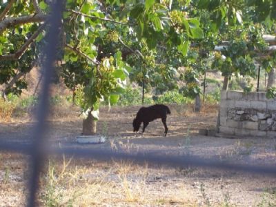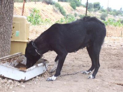 Auf einem meiner Spaziergänge mit Renates Hund Felix an einem sehr heissen Tag sah ich sie mit einem mal. An einer kurzen Kette, auf einem völlig abgelegenen, eingezäunten Pistazienhain - nichts als eine dreckige verkrustete Wanne, kein Wasser, kein Unterschlupf.....