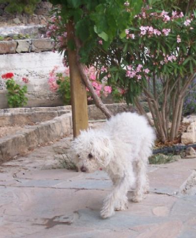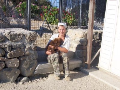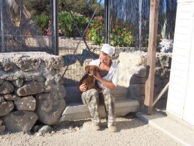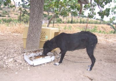 Täglich Wasser, Futter, ein Scalibor-Halsband, eine ausrangierte Flugbox als Unterschlupf, ein paar Streicheleinheiten und sanfte Worte - mehr konnten wir nicht tun. Der Bauer, dem der Pistazienhain gehört war in der kurzen Zeit nicht herauszufinden, Renate wird es trotzdem weiter versuchen.