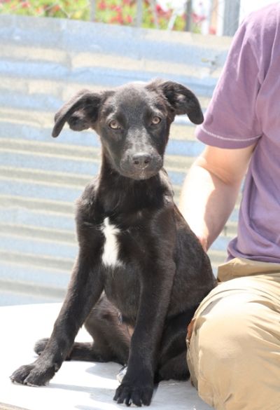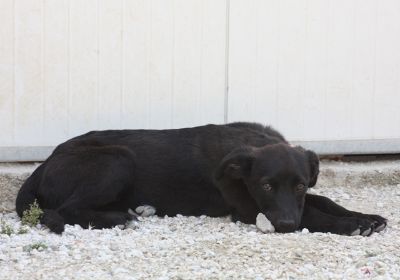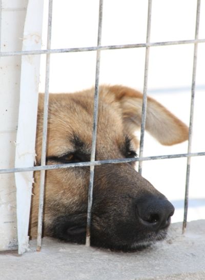 Die meisten Hunde im Tierheim sind wie immer freudig aufgeregt, wenn man sich den Zwingern nähert und jeder versucht ein wenig Aufmerksamkeit und Streicheleinheiten zu ergattern. Ich war schockiert, wie voll das Tierheim besetzt ist - nicht ein Zwinger war frei und keinerlei Platz für die vielen Neuankömmlinge, deren Strom nicht abreisst. Auf der Insel finden viele Kastrationsprogramme statt um der Flut der Welpen Herr zu werden, aber leider nehmen es die Griechen noch nicht an und so sind die Zwinger voll mit ausgesetzten Welpen und Junghunden.