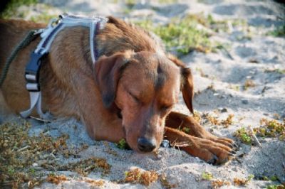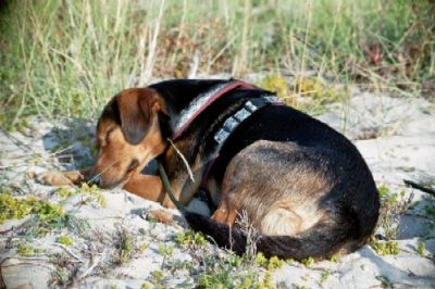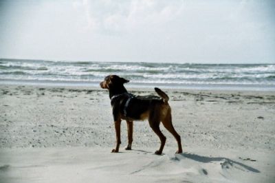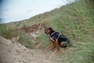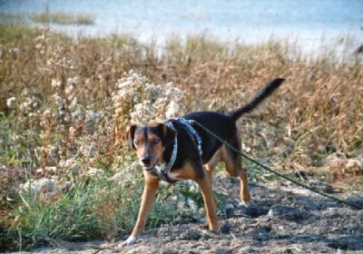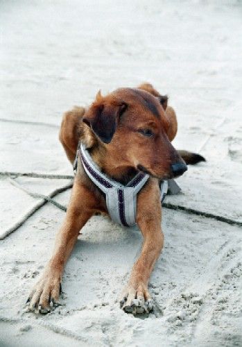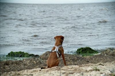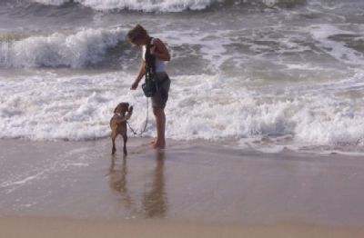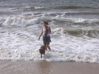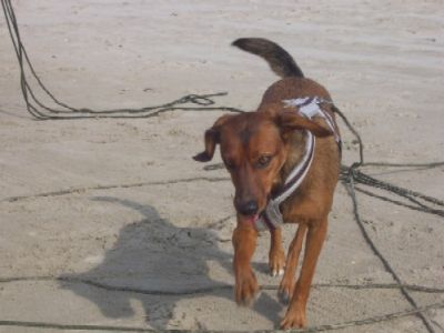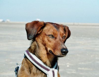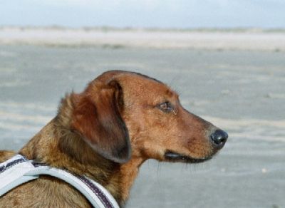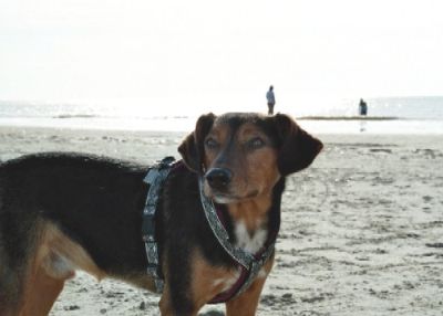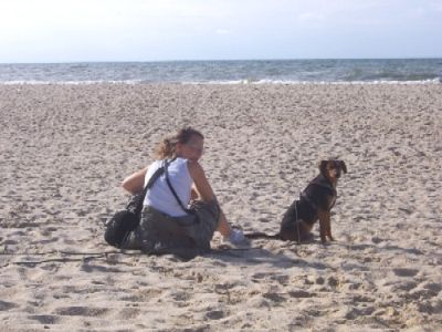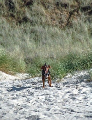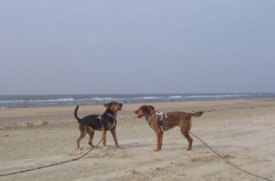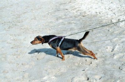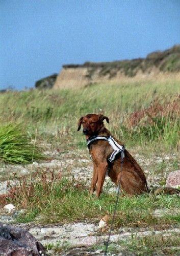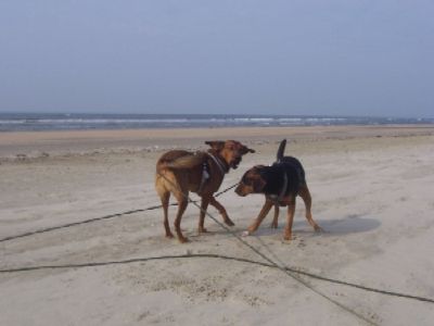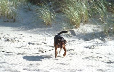 Nein - ich ziehe nicht an der Leine - ich dehne mich nur! *Aber eigentlich will ich eher wieder in weite Entfernung - weg vom Meer!*