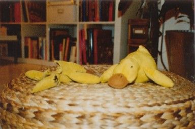 PS: Hier könnt ihr mal unsere anderen beiden Weihnachtsgeschenke sehen, von denen wir aber vorerst eines bekommen haben und die zweite dann zum Geburtstag :-). Ihr könnt sicherlich sehen, warum - einmal neu und einmal nach einem Tag :-)). Dabei waren die nicht einmal mit Schaumstoff o.ä. gefüllt, sondern ziemlich beissfest mit einem Tennisball.....