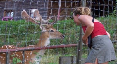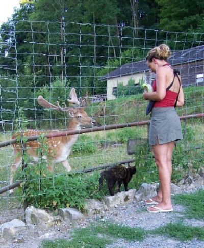 Dann hat Melli, wieder ihre Freunde, die Rehe gefüttert, wobei heute nur der Hirsch kam und wenige Rehe - die Kitze hielten sich im Hintergrund.