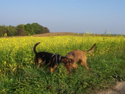 Bachblüten brauchen wir nicht mehr - sie sind offen und zugänglich, selbst für alles was ihnen fremd ist. Sie vertrauen uns und folgen uns, wohin wir auch wollen. Es gibt immer noch kleine Ängste, die sie zögern lassen, aber daraus entstehen keine größeren Probleme mehr. Unsere Luna ist mittlerweile so verschmust, dass sie den Beinamen "Knutschkugel" erhalten hat - das musste sich aber alles erst entwickeln. Es ist nichts mehr da von ihrer anfänglichen Schüchternheit, Ängstlichkeit und Unsicherheit - sie sind zu zwei souveränen und gelassenen Hunden herangewachsen.