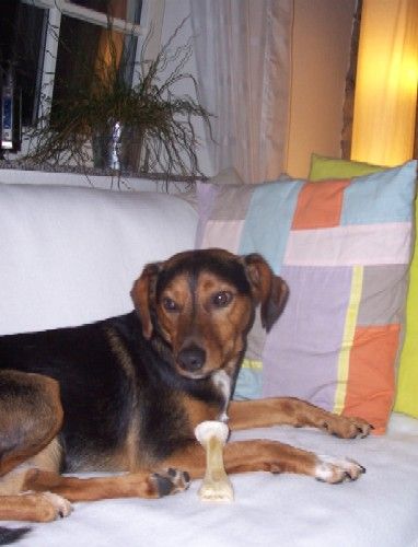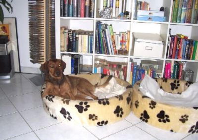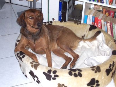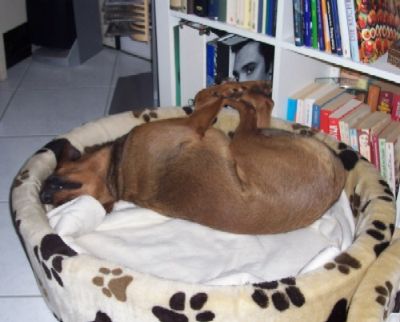Entgegen der Bilder, die man hier sieht ist Luna ein SEHR schlanke Hundedame und hat nicht die obige Figur eines Ei's Das ist nur Luna's "Ich bin sehr entspannt und erschöpft Schlafposition" :-)