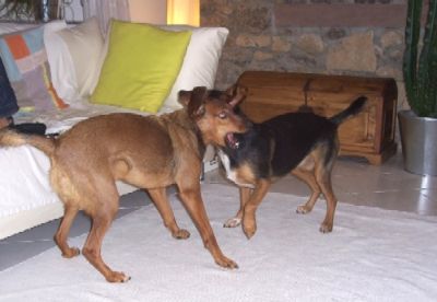 Sie sind ausgeglichen, man kann ihnen die Lebensfreude richtiggehend ansehen und zufrieden! Sie freuen sich über jeden Gast, der uns besucht - ob er nun zwei oder vier Beine hat - nach den Spaziergängen wird ein wenig getobt und danach rollen sie sich zufrieden auf ihren Kissen oder in ihren Körbchen ein und schlafen seelig! Geschmust wird bei jeder Gelegenheit :-)
